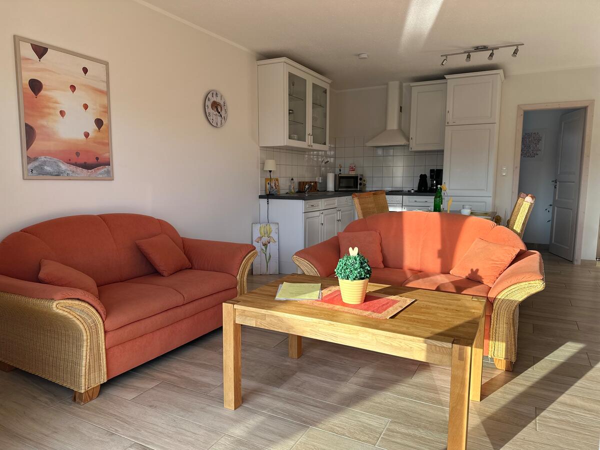 Im Reihenhaus befindet sich auch im 1. Obergeschoß die Zweiraum-Wohnung "Seestern" mit Balkon für 2 Personen.