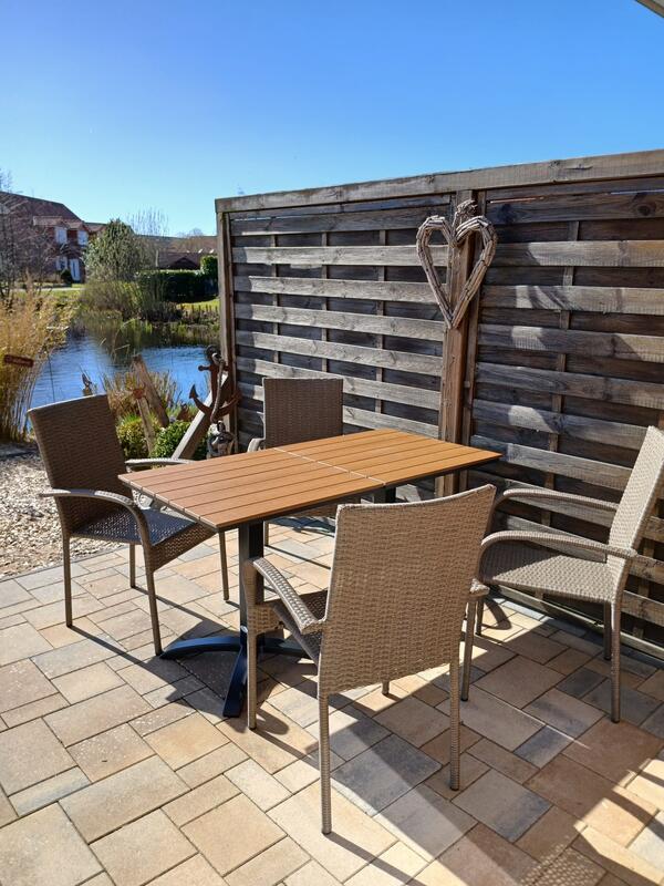 Direkt an die Terrasse grenzt ein Teich, der nicht umzäunt ist, daher Obacht für Ferien mit kleinen Kindern.