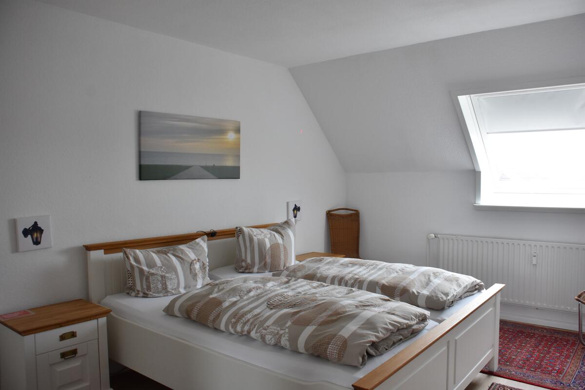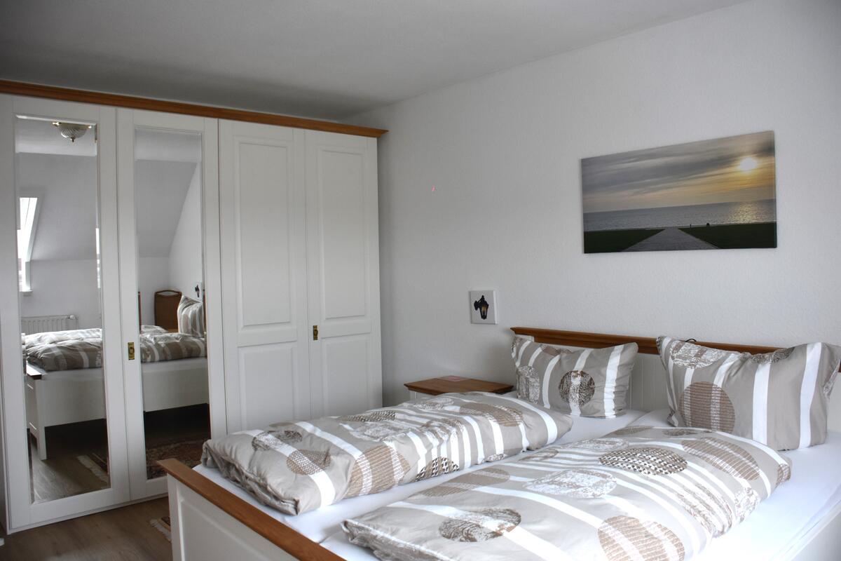 Im Schlafzimmer erwartet Sie ein Doppelbett und ein großer Kleiderschrank