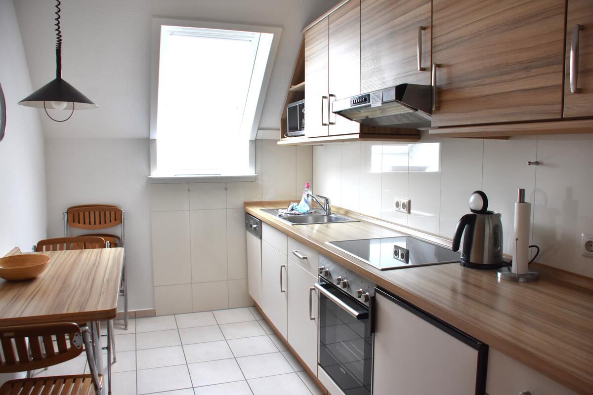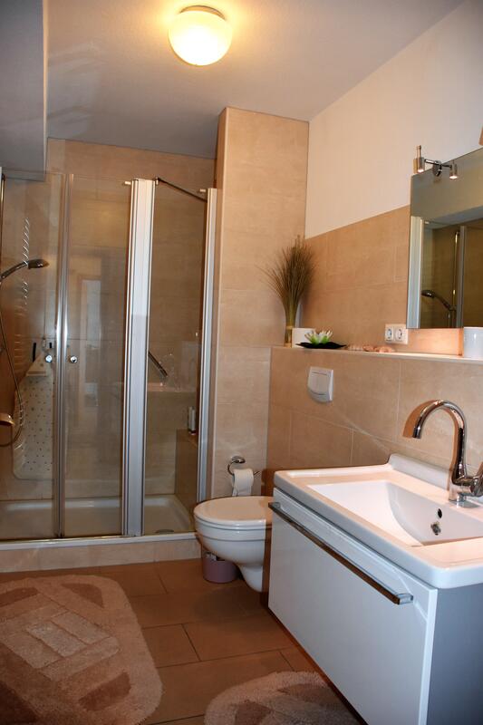 Die Wohnung ist mit einer modernen Küche und einem großen Duschbad, mit Sitzmöglichkeit und flachem, breitem Einstieg ausgestattet worden.