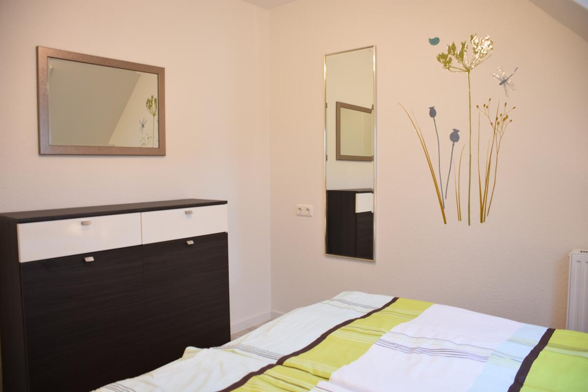 Im elterlichem Schlafzimmer befindet sich ein großes Doppelbett (180x200cm). Im Kinderzimmer ist ein Einzelbett (90x200cm).