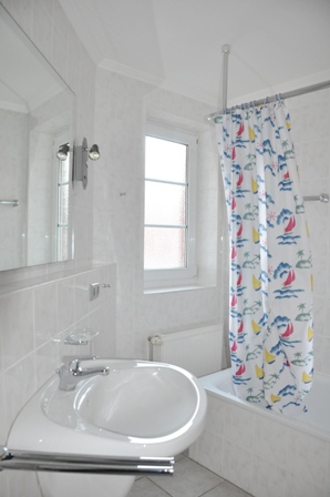 Das Tageslichtbad ist mit Badewanne und Duschfunktion, sowie ein WC ausgestattet.