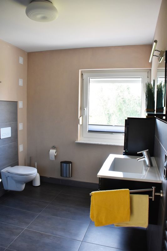 Auch ein Duschbad mit Tageslicht und Rainshower-Dusche mit Massagedüsen befindet sich im Erdgeschoss.