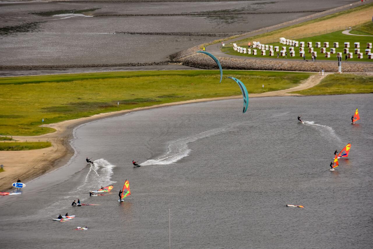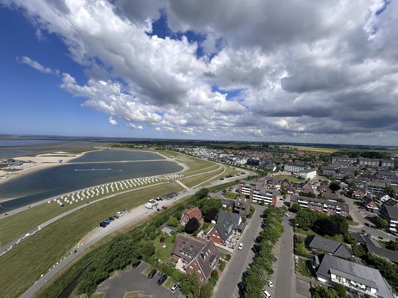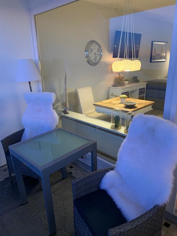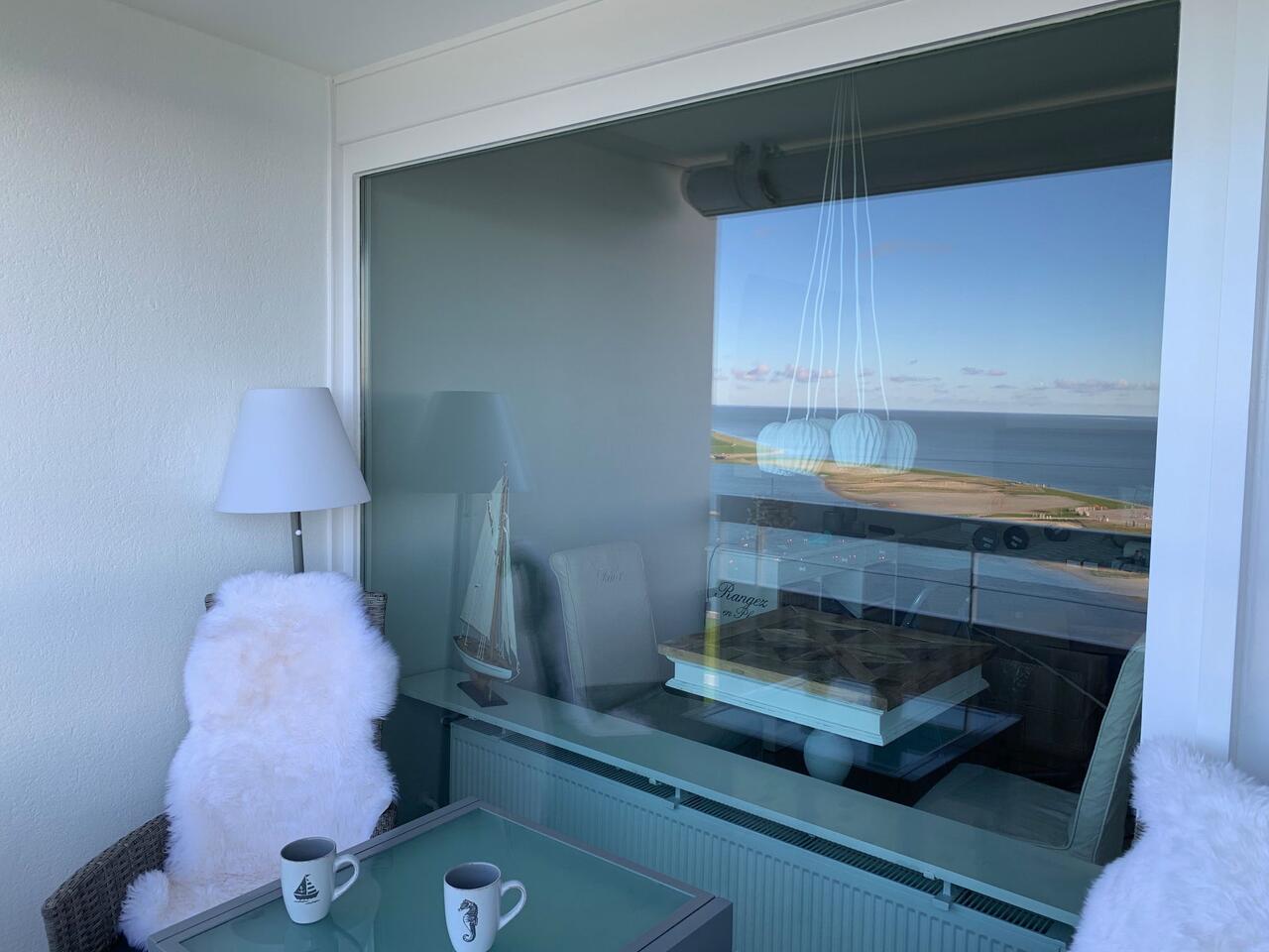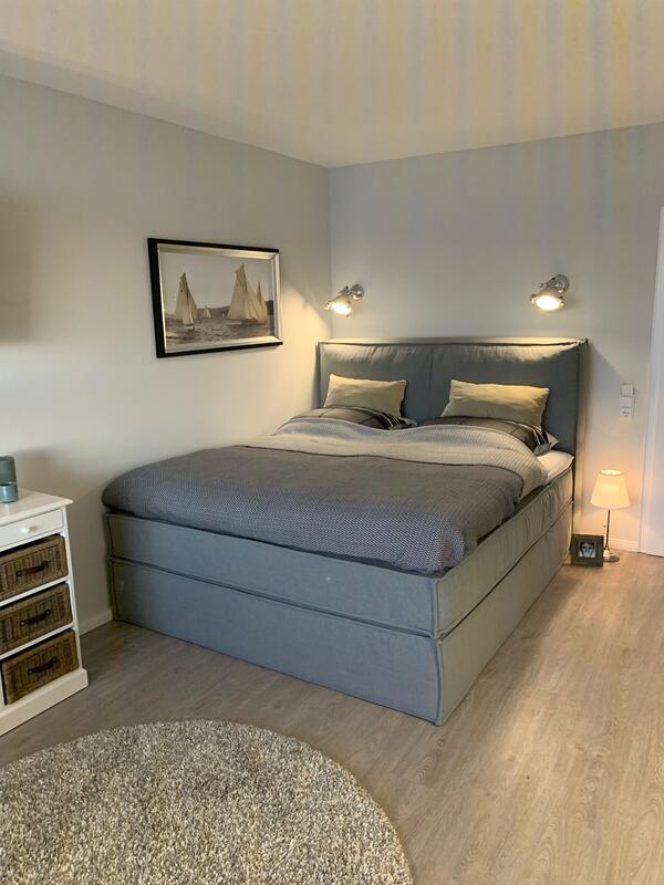 Der Wohn-/Schlafraum ist mit hochwertigen Möbeln ausgestattet. Ein großes Boxspringbett (180x200 cm) bietet genügend Platz zum Erholen. Genießen Sie einen traumhaften Ausblick auf die Nordsee während des Frühstücks oder Abendessen.