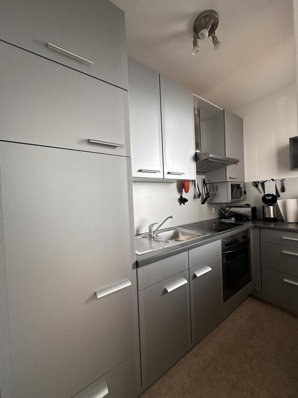Die Küche ist mit allem notwendigen ausgestattet und verfügt über einen großen Kühlschrank mit Gefrierfach, Mikrowelle, Herd mit Ceranfeld und einen Backofen.