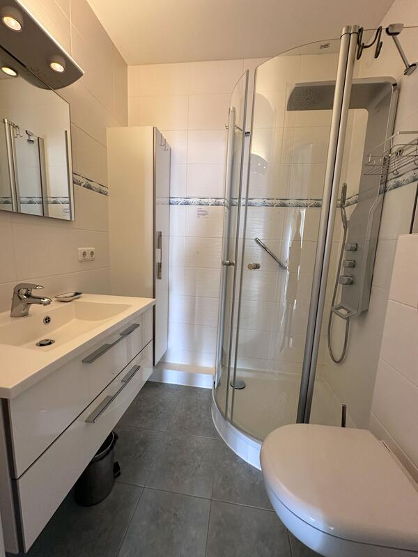 Wohnfläche:50 m² / 2 Räume Etage/Geschoss:3 (Fahrstuhl vorhanden) Anzahl Personen:für bis zu 3 Personen Zustellbett möglich:nein Komfort:Gehobene Ausstattung Küche:ja (separte Küche)4-Zonen Cerankochfeld, Backofen, Geschirrspüler, Kühlschrank Wohnzimmer:Wohnzimmer mit Schlafcouch, Flachbild-Kabel-TV, Eßplatz Schlafzimmer:Doppelbett und Kleiderschrank Bad:Duschbad mit WC (Bad mit Dusche und WC) Internetzugang:W-Lan vorhanden. Dies ist eine freiwillge Leistung. Es besteht kein Rechtsanspruch